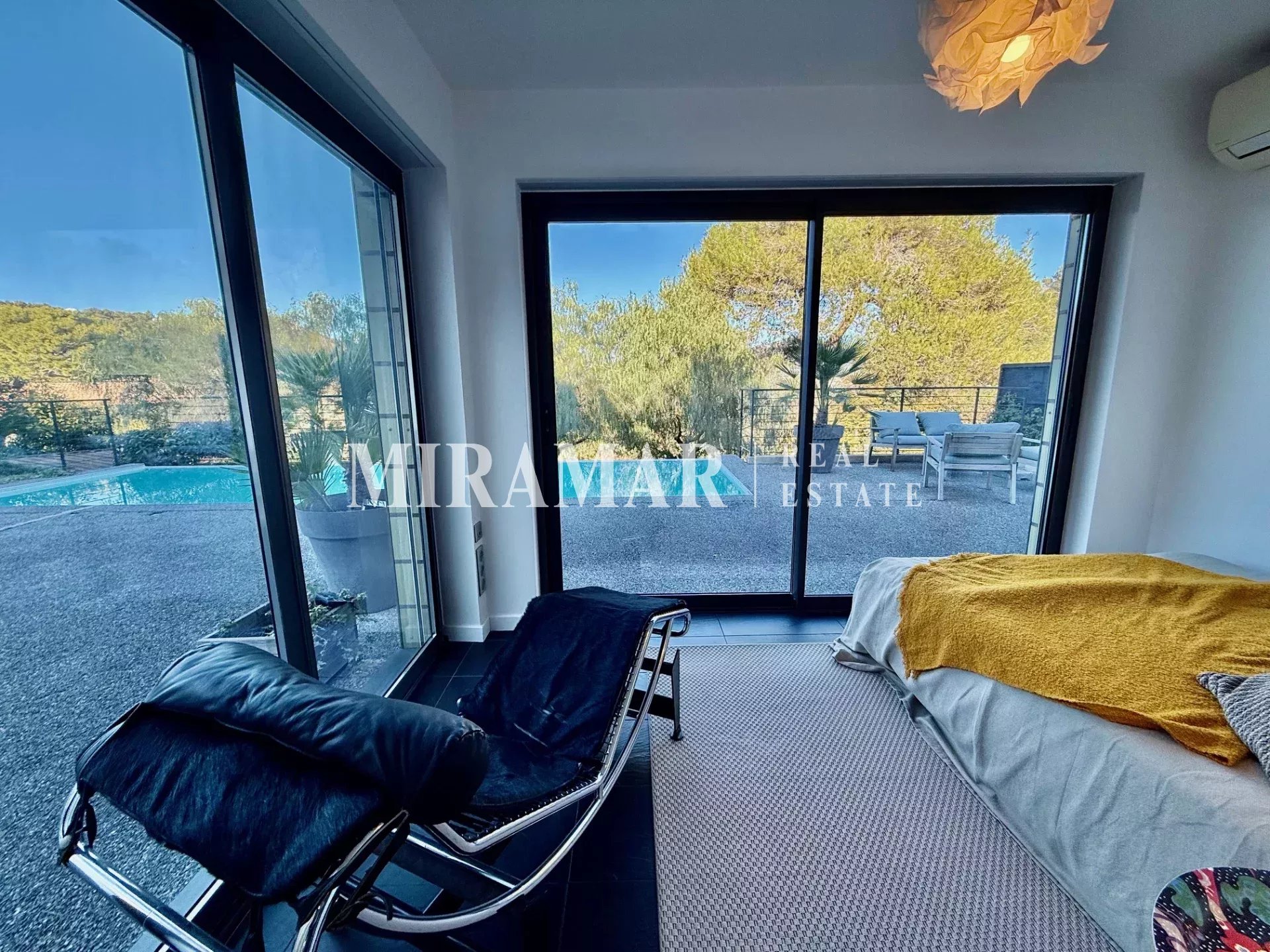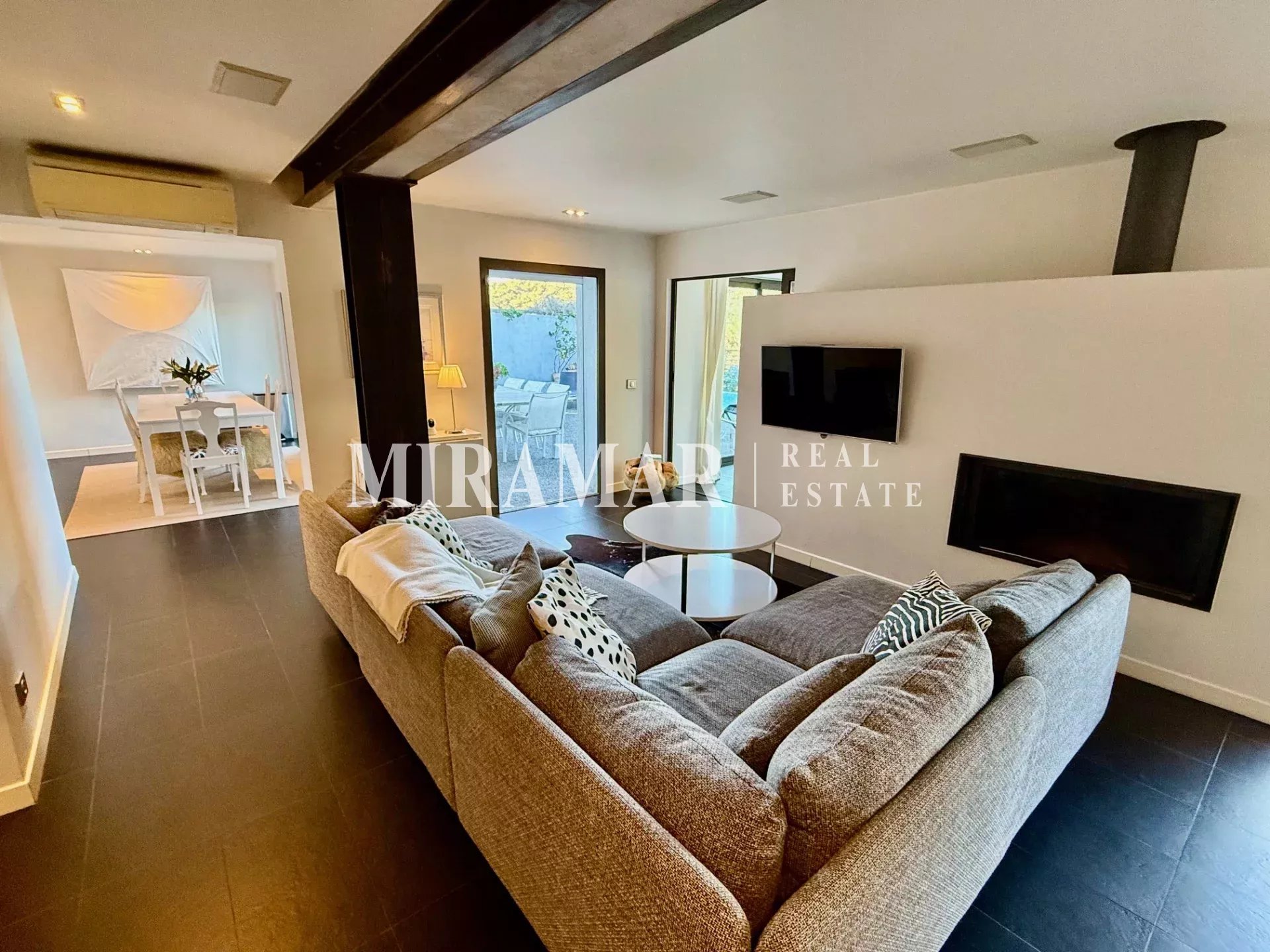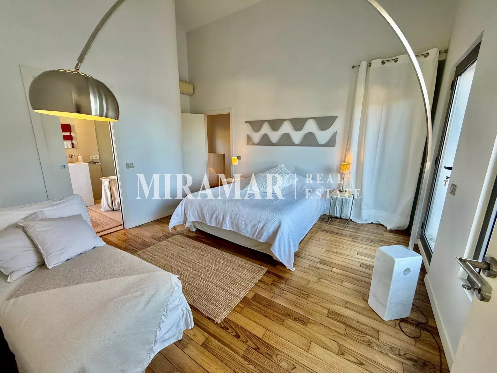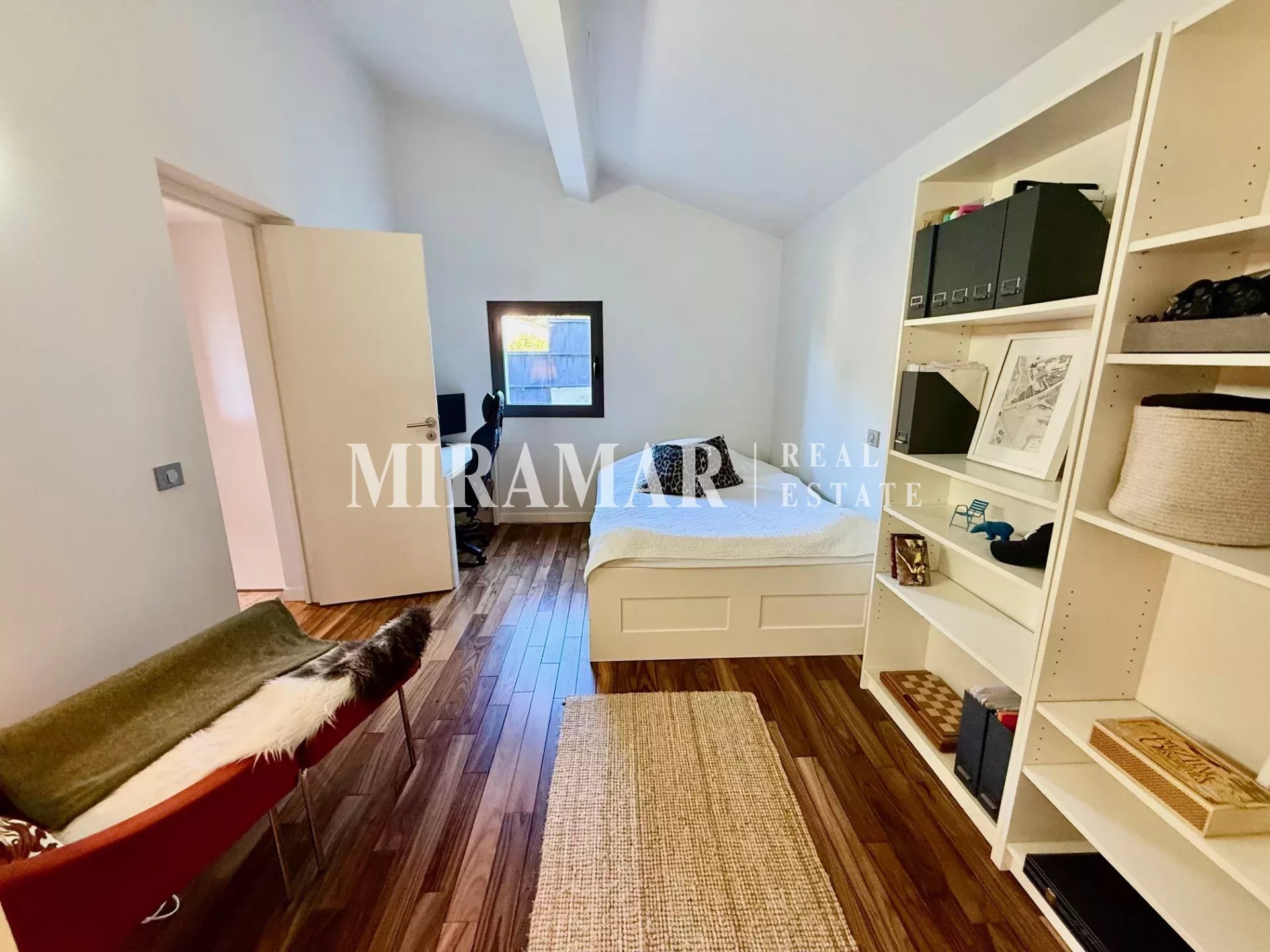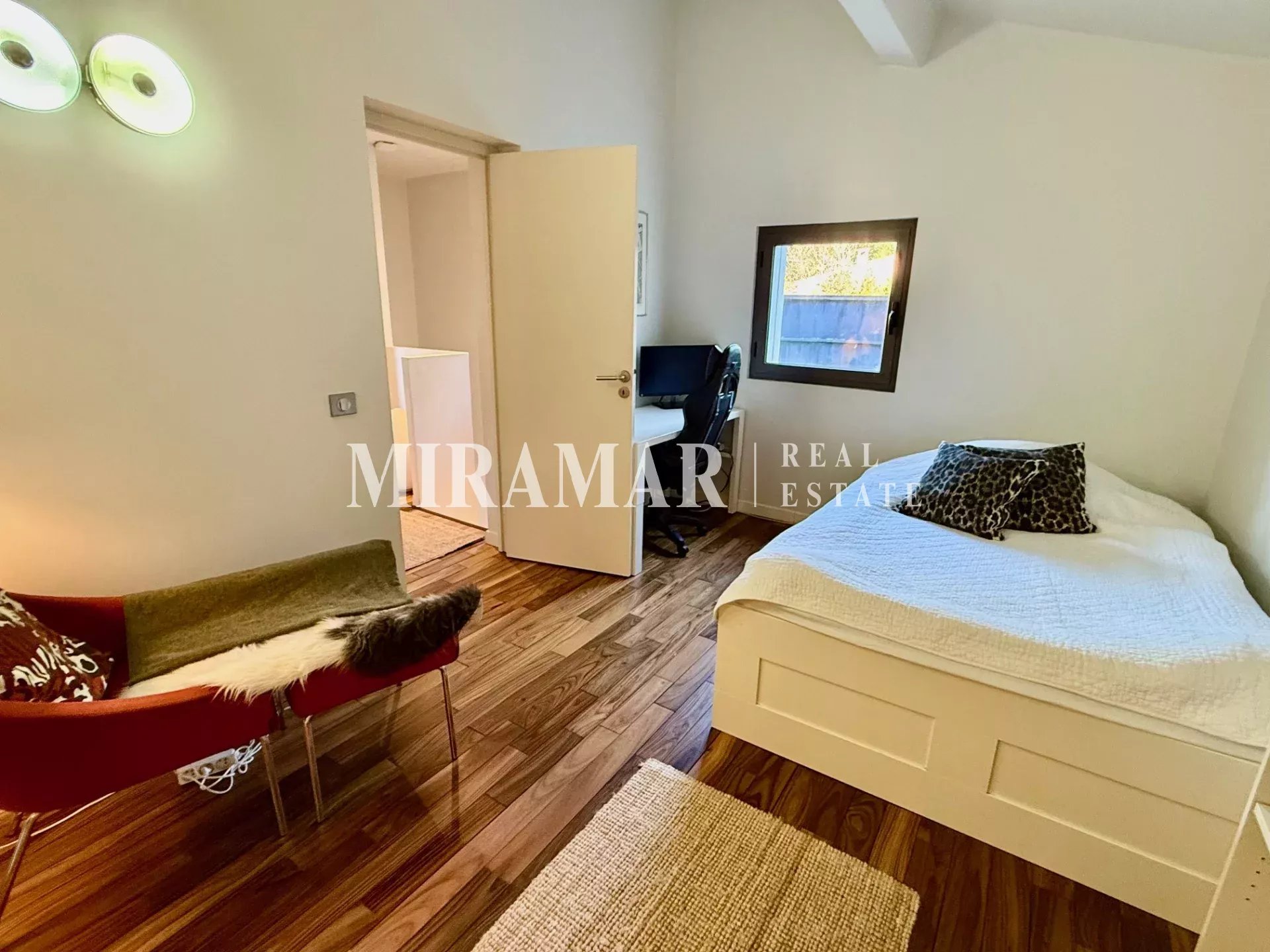 La maison est composée d’un séjour avec cuisine et salle à manger, 3 chambres dont 2 en suite avec dressing et salles de bain, + une chambre communicante et une buanderie.